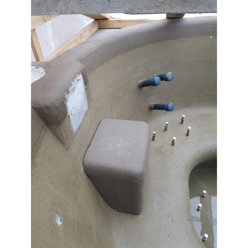 Bazénové formy sú vyrobené zo špeciálneho extrudovaného polystyrénu, podľa individuálnej objednávky. Interiér je pokrytý drvenou sklenenou mozaikou.