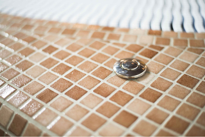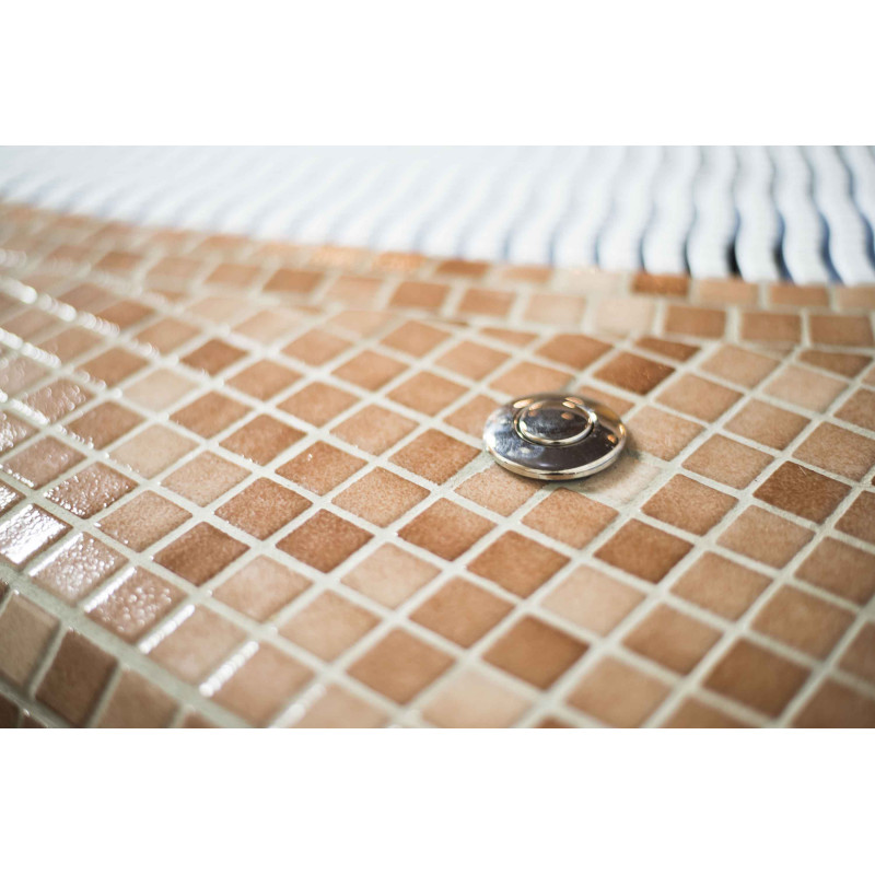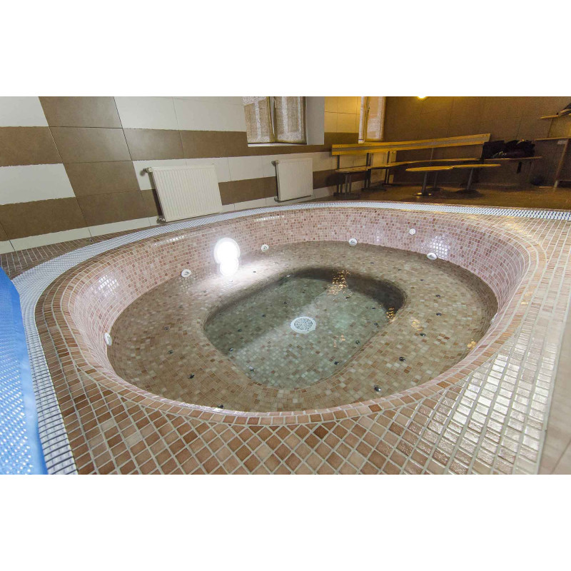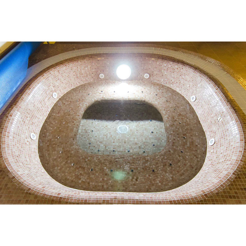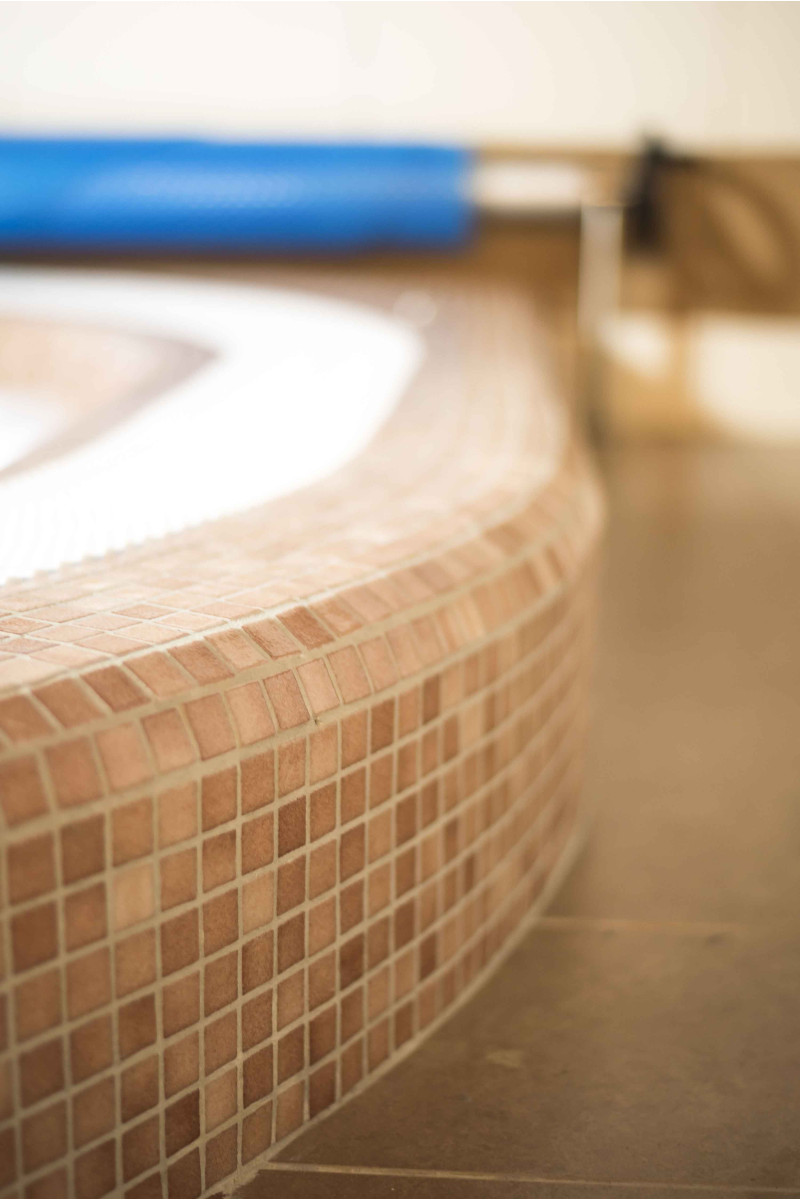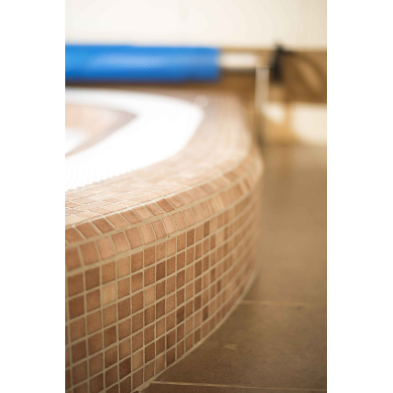 - Dlažba - vnútorná a vonkajšia strana bazéna je pokrytá neutrálnou farebnou drvenou sklenenou mozaikou.