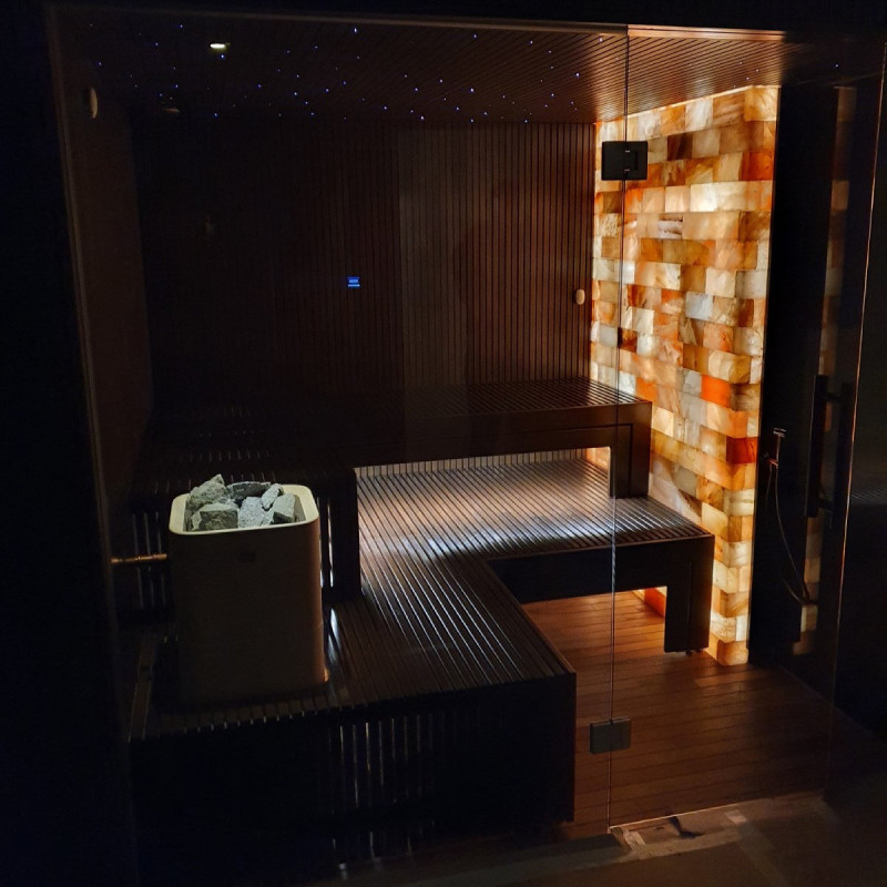 Himalájske soľné tehly zvolené na dekoráciu sauny so zabudovaným osvetlením vytvárajú útulné prostredie a ešte viac umocňujú účinok sauny. Himalájske soľné kamene sú prírodným ionizátorom, ktorý účinne zlepšuje kvalitu vzduchu vyžarovaním záporných iónov. Negatívne ionizovaný vzduch zlepšuje zdravie, pomáha pri liečbe mnohých chorôb ako: bronchiálna astma, choroby pľúc a priedušiek, postinfarkt, hypertenzia, vredy tráviaceho traktu, zápaly žalúdka, choroby štítnej žľazy, dermatitída, rôzne alergie, nervové choroby, pomáha prekonať mozgovú príhodu. Výhody robenia procedúr v takejto saune budú dvojnásobné.