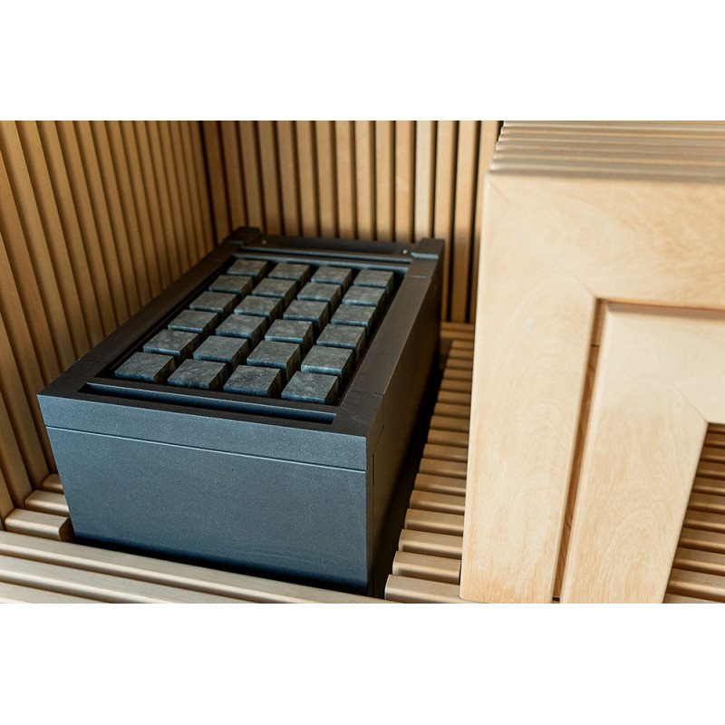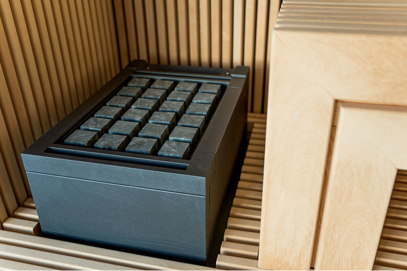- ohrievač má unikátne kamene v tvare kocky, no navyše bol vybavený kameňmi jadeit (40kg) - pre neustále udržiavanie teploty a pohodlný pôžitok zo sauny
