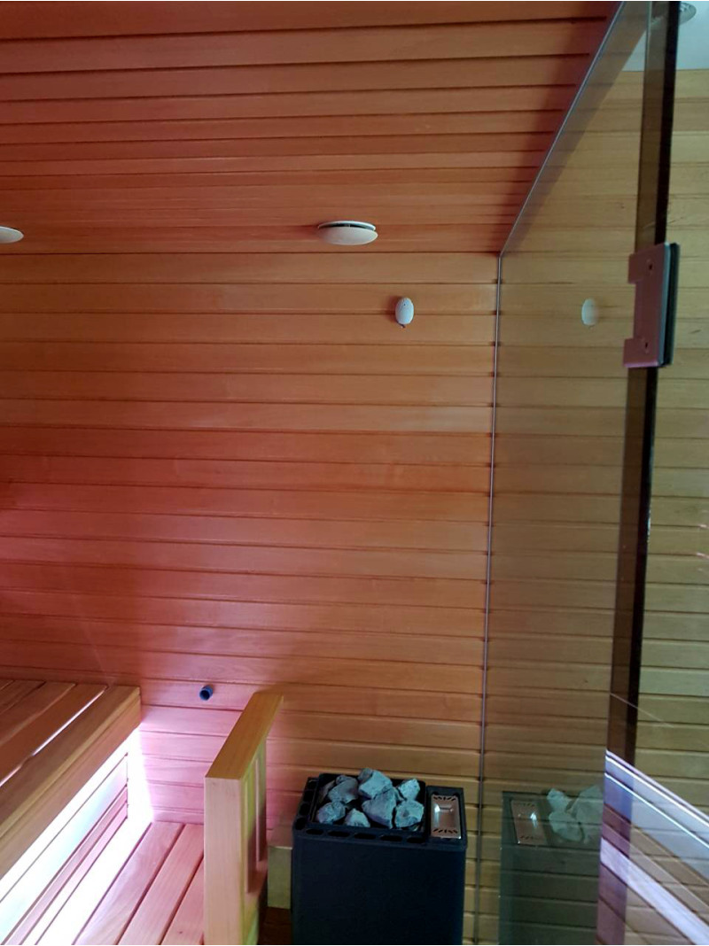 Sauna je vybavená reproduktormi, aby ste počas saunovania mohli počúvať svoju obľúbenú hudbu.