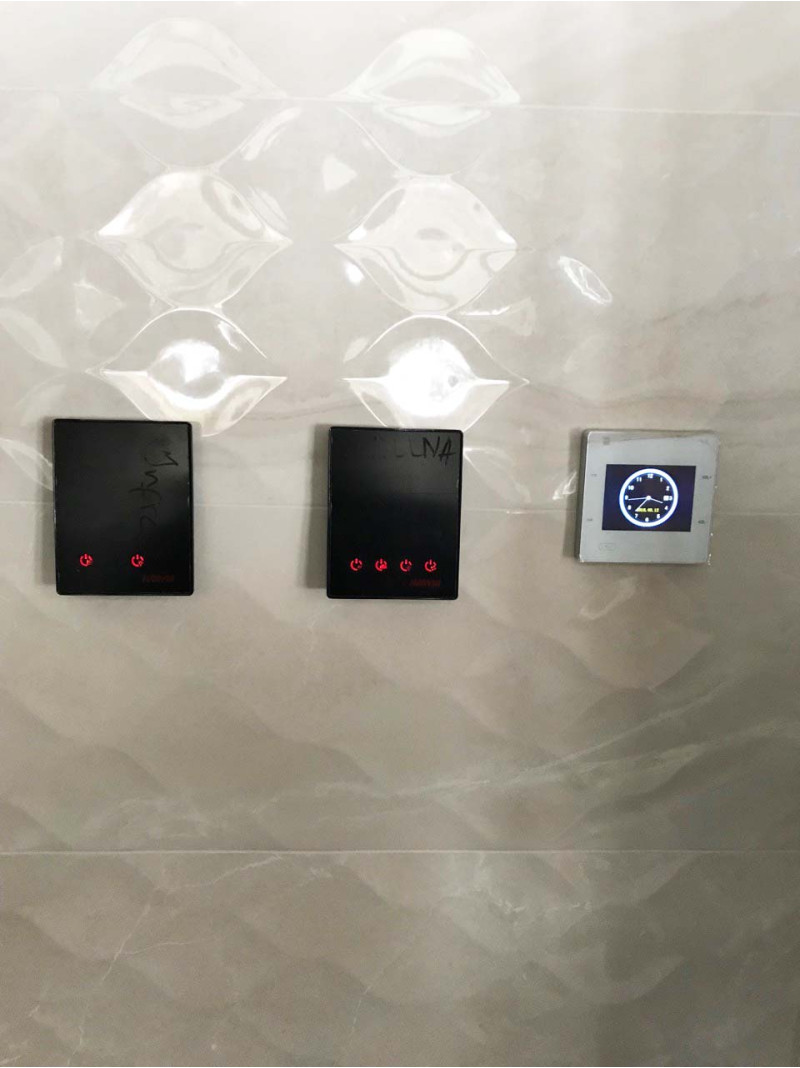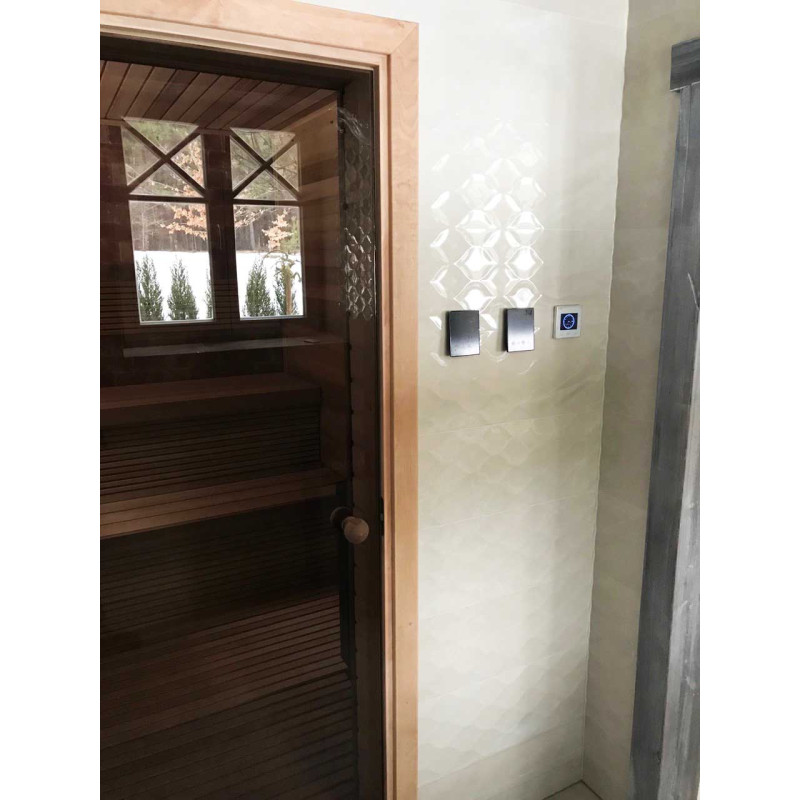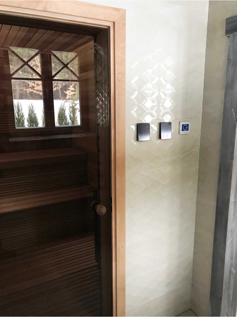 - Dva ovládacie panely nainštalované mimo sauny - na ovládanie dvoch oddelených režimov. Ovládací panel Harvia Xenio Combi CX110C a infra ovládací panel Harvia CX36I.
