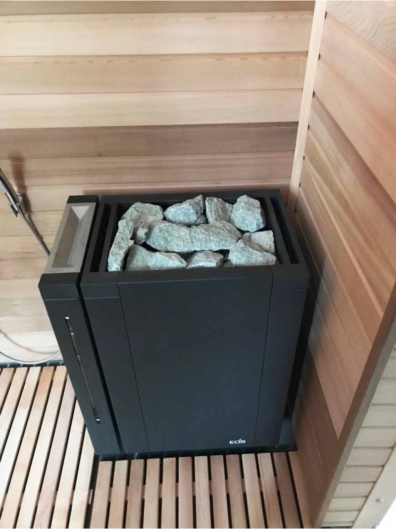 - Elektrická exkluzívna dizajnová rúra EOS Mythos S45 Vapor s parným generátorom. Rúra pojme až 45 kg jadeitových kameňov. Toto množstvo stačí na udržanie konštantnej teploty a pohodlné užívanie si sauny. Pohodlná údržba - kamene sa nedotýkajú vykurovacích telies. Môžu byť vymenené bez odstránenia kameňov.