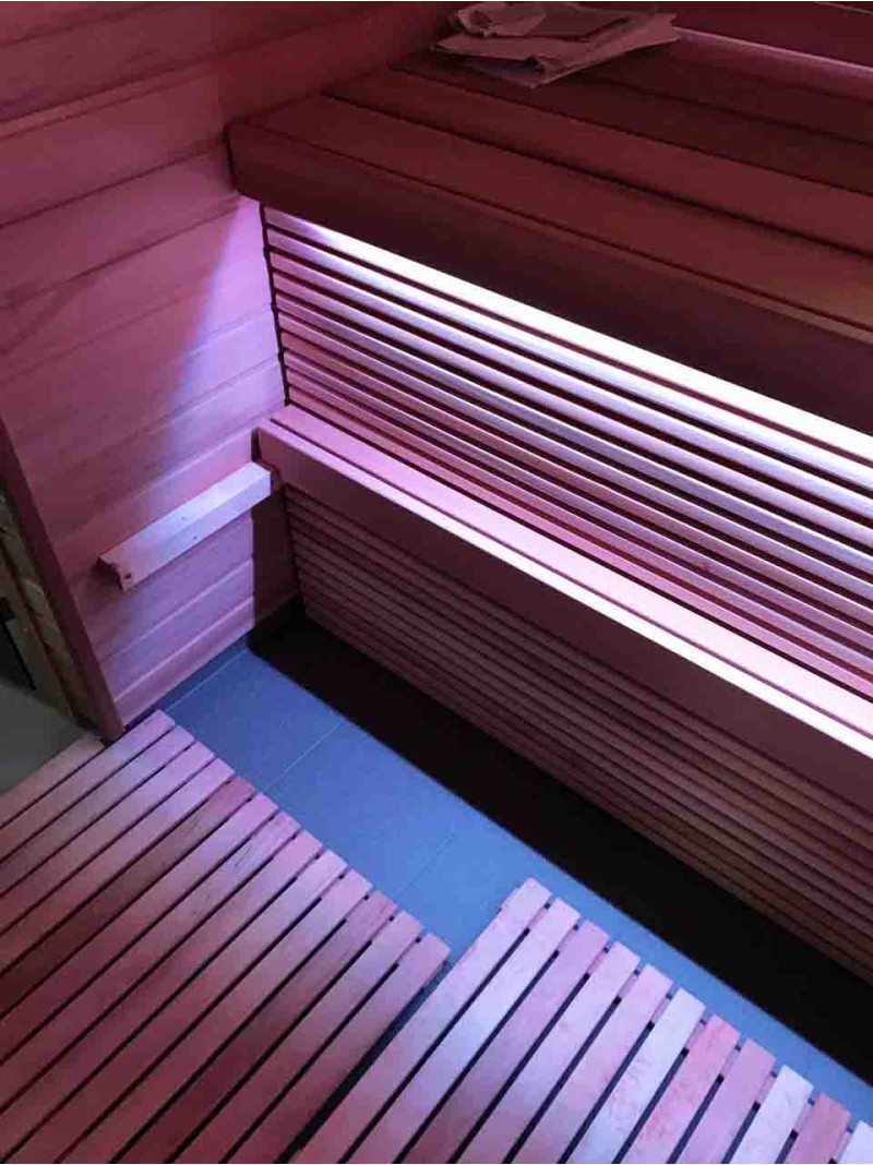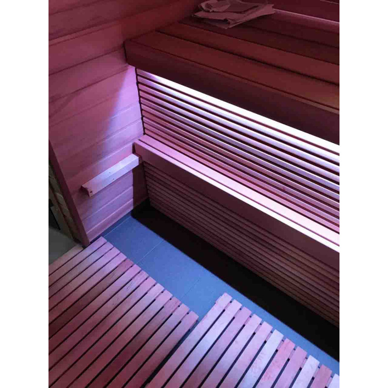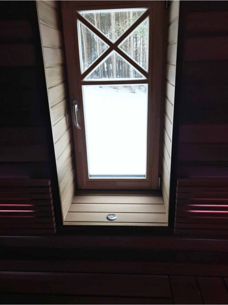 - Vnútorné obloženie a ležadlá vyrobené z najkvalitnejšieho cédrového dreva - nehoriace telo. Postele vyrobené z neštandardných širších dosiek - pre pohodlnejšie kúpanie. Ochrana operadla a krytu rúry - abachi pásy.
