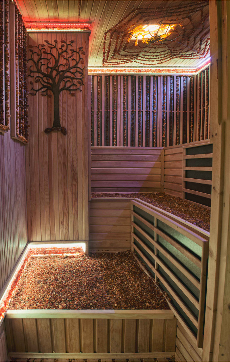 Boli vykonané rekonštrukčné práce v saune v súkromnej materskej škole Klaipėda „Pasakėlė“. Diela a riešenia z jantáru vyrobil zákazník.