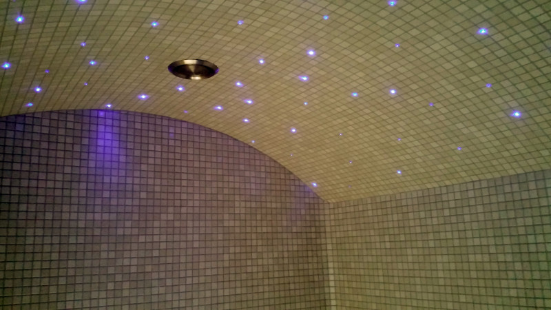 Systém osvetlenia je "hviezdna obloha". Toto osvetlenie vytvára v parnej saune pôsobivý a útulný výhľad. Pod lehátkami je osvetlenie na osvetlenie podlahy.