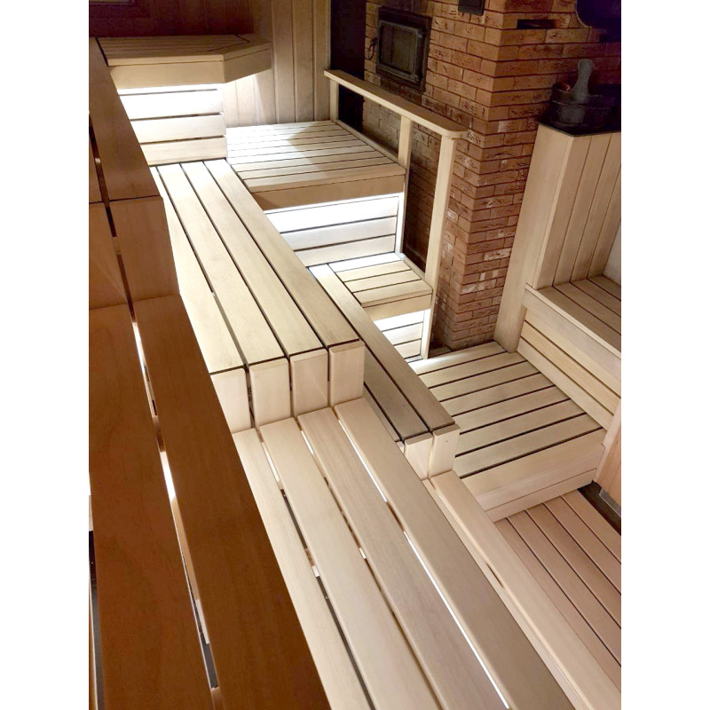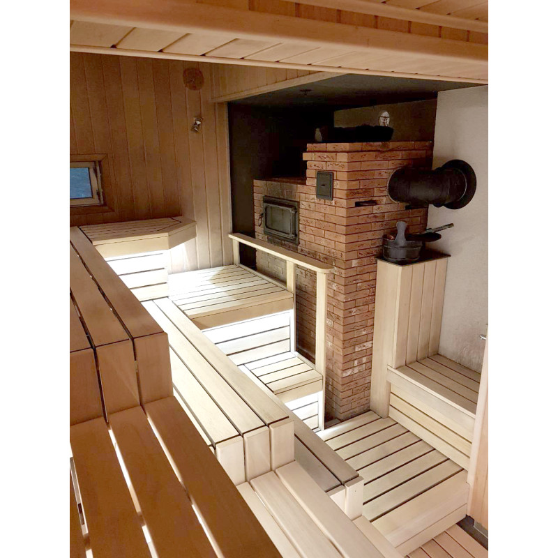Drevo je impregnované, chránené pred vysokým teplom a pripravené na dlhodobé používanie. Lavice a operadlá sú namazané špeciálnym olejom na saunové drevo.