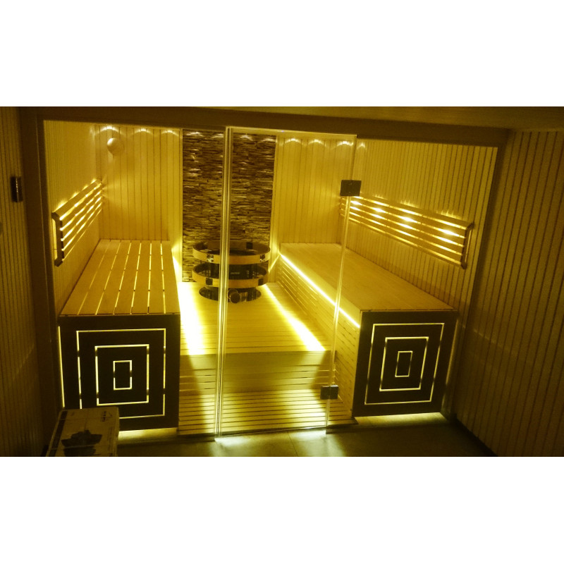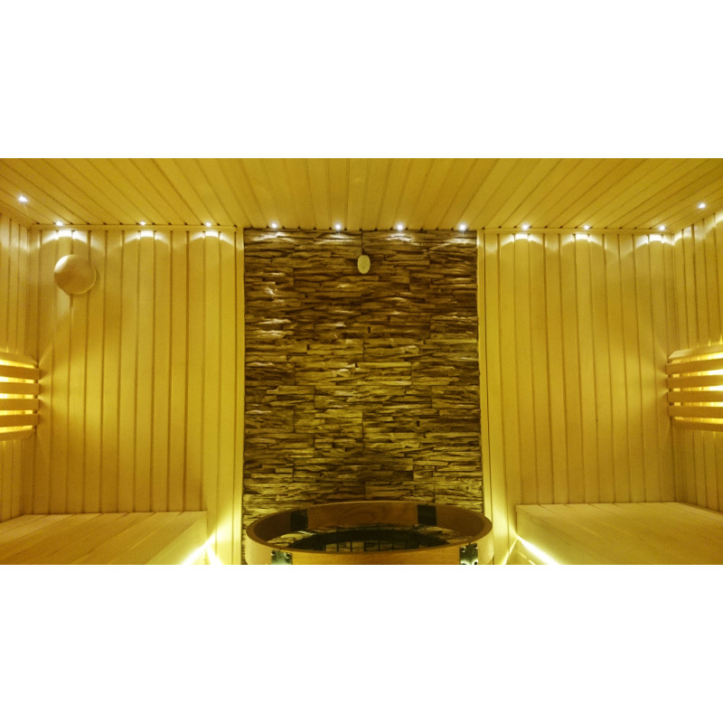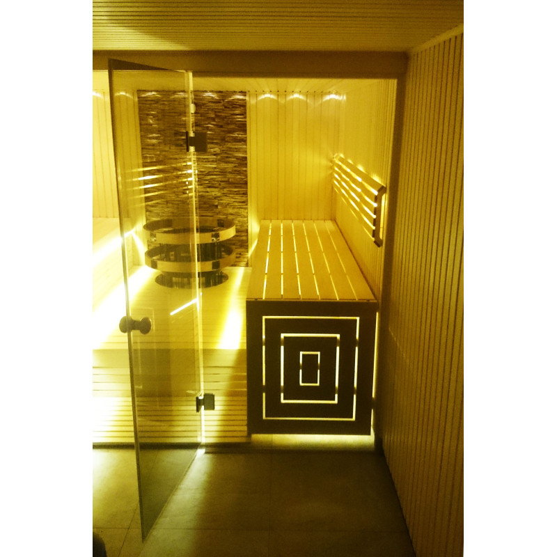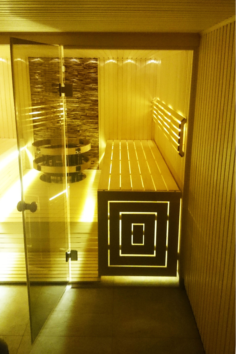 Brusel má saunu, ktorá vyniká svojim dizajnom a technickým riešením. Bol navrhnutý individuálny, priestorovo úsporný projekt pre malé sauny aj kúpeľne. Ležadlá do sauny sú inštalované na pódiu oproti sebe, čím vytvárajú skvelú atmosféru komunikácie. Kachle sú zabudované v podlahe s ochrannými krúžkami. Dekoratívna tehlová stena je exkluzívnym akcentom, ktorý vytvára útulné, originálne prostredie. Sklenená vitrína opticky zväčšuje priestor a dopĺňa ultramoderný štýl sauny.