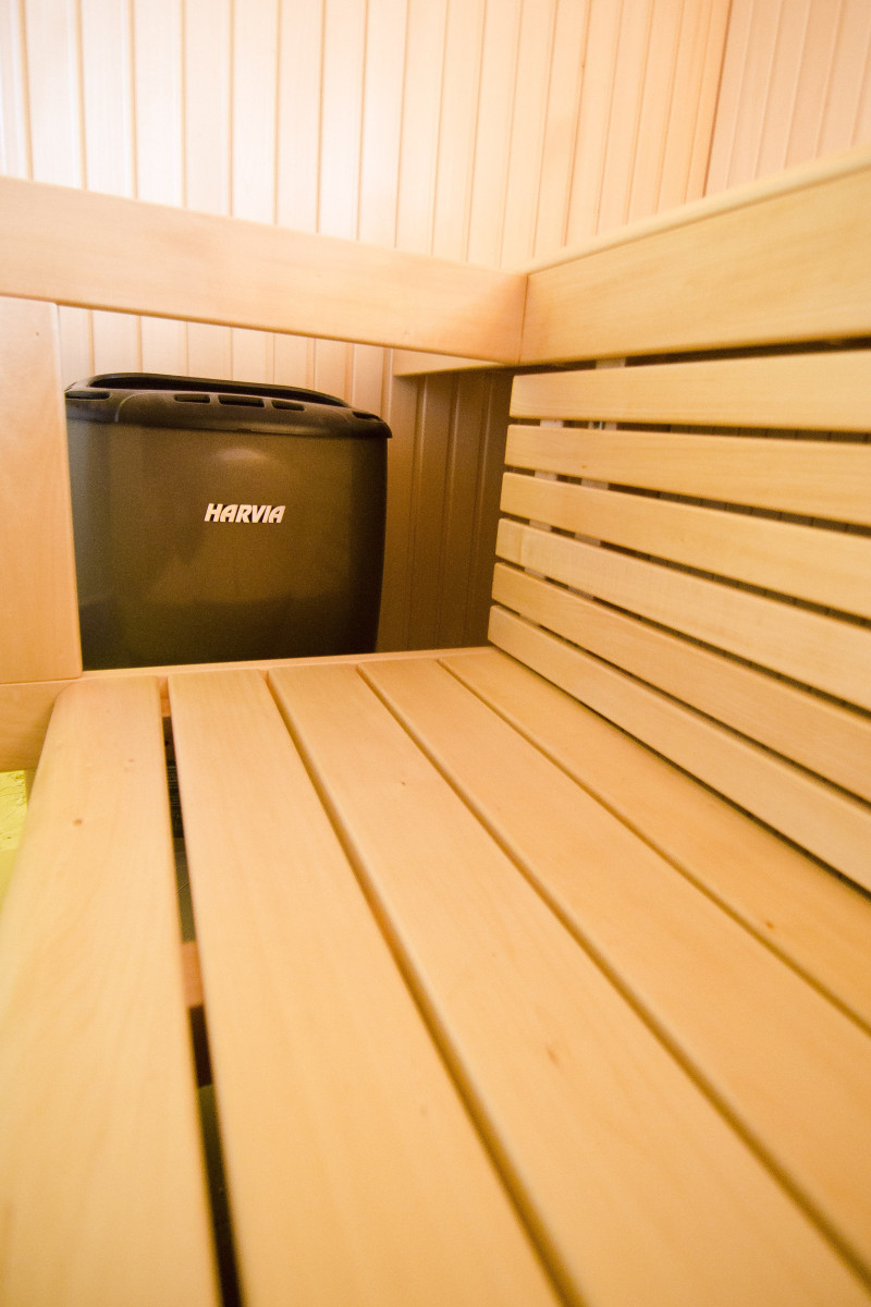 Osvetlenie - Harvia lampy inštalované pod dreveným operadlom poskytujú časť relaxačného efektu sauny.