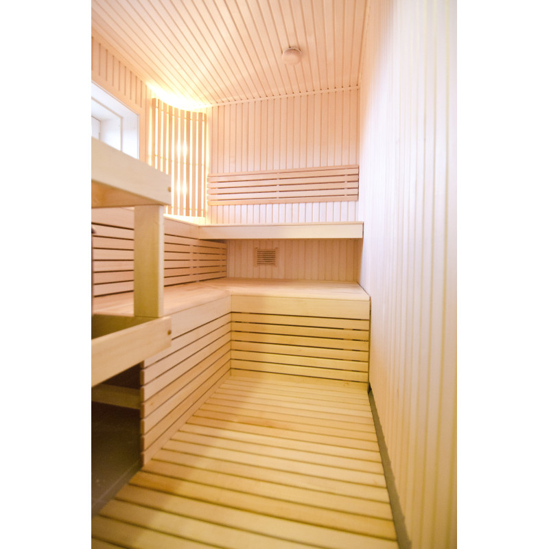 Obklad stien a lavičiek je vyrobený z najkvalitnejšieho lipového dreva. Drevo je mimoriadne ľahké a dodáva saune priestor.