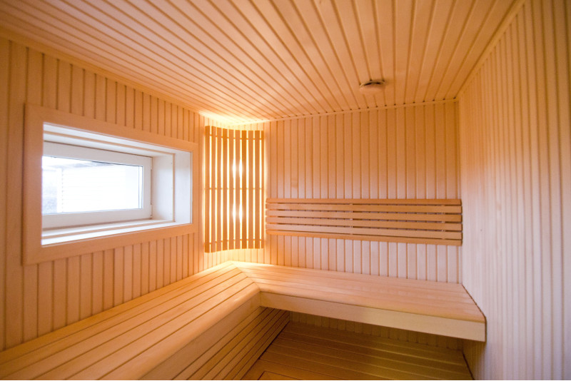 Sauna má aj okno, ktoré dáva miestnosti viac priestoru a svetla.