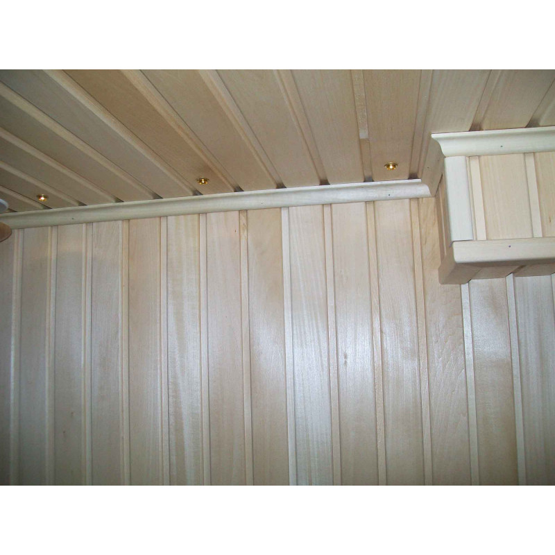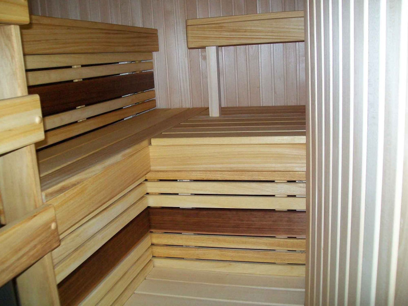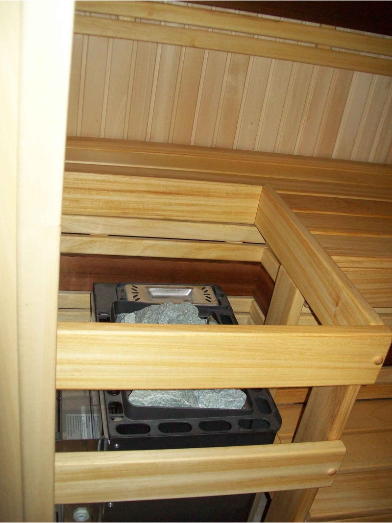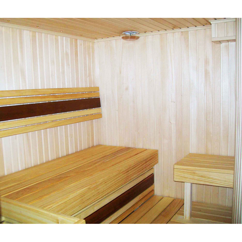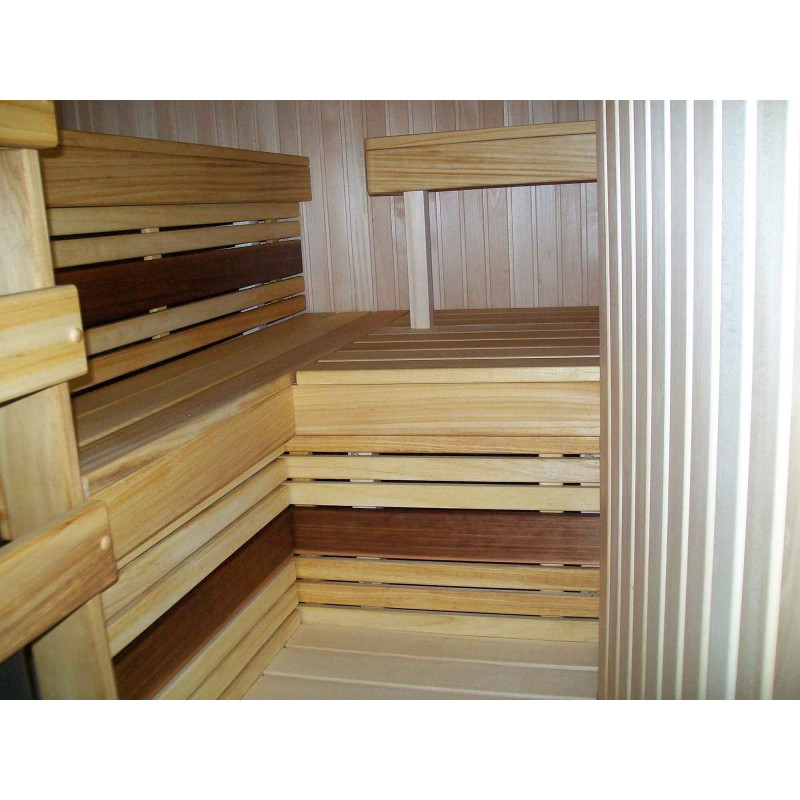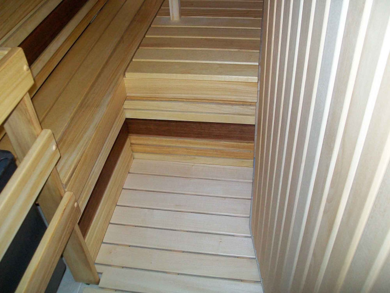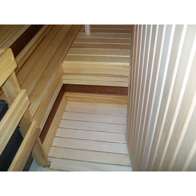 Na inštaláciu stropov a stien sauny sa používa lipový obklad 15 mm - štýlový, ľahký a vyžarujúci príjemnú vôňu dreva. Na lavice a operadlá bolo zvolené najkvalitnejšie cédrové a abachi drevo Toto drevo je kvalitné, nielenže krásne vyzerá, ale v porovnaní s inými druhmi dreva aj najmenej hreje, preto je príjemné a bezpečné sa takýchto lavíc dotýkať. Podlahový rošt - drevo jelša čierna.