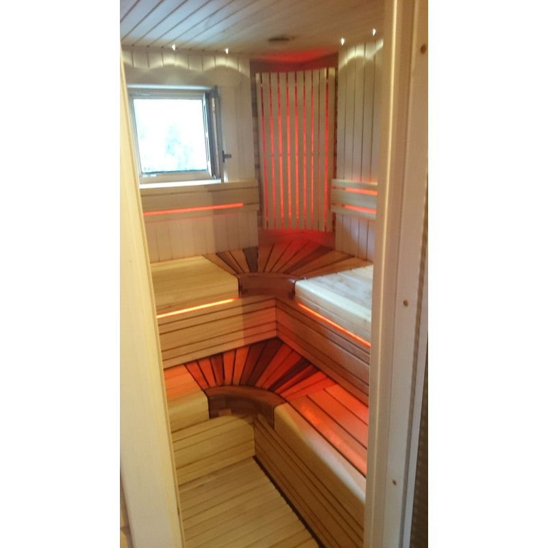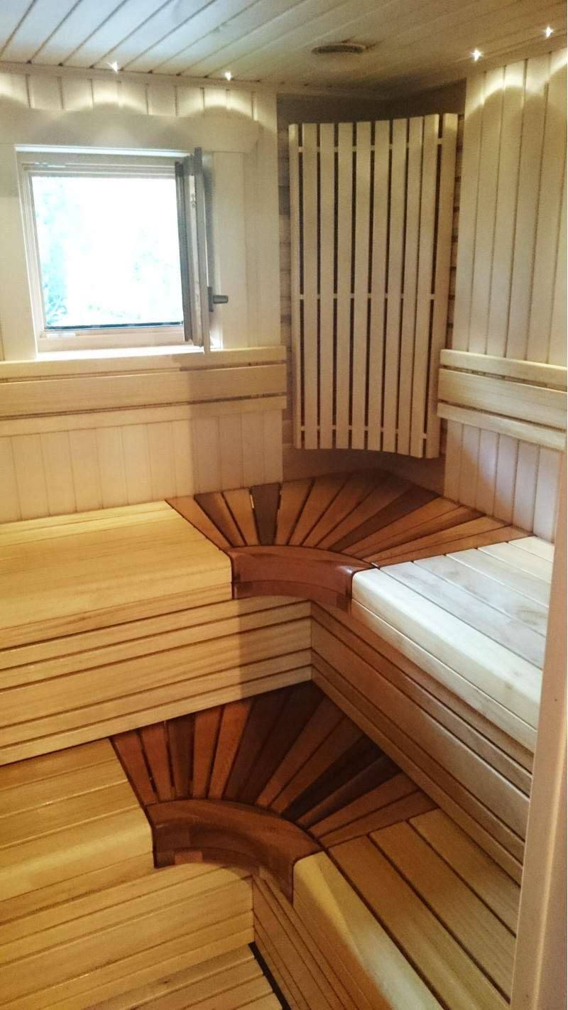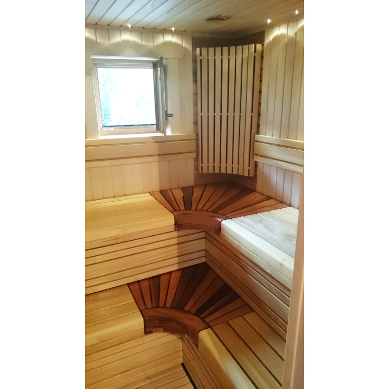 Interiér sauny je vyrobený z najkvalitnejšieho lipového a cédrového dreva, lavice sú vyrobené z abachi a cédrového dreva. Toto drevo je na lavice najvhodnejšie, keďže sa málo zohrieva, je bezpečné a príjemné na dotyk takého dreva.