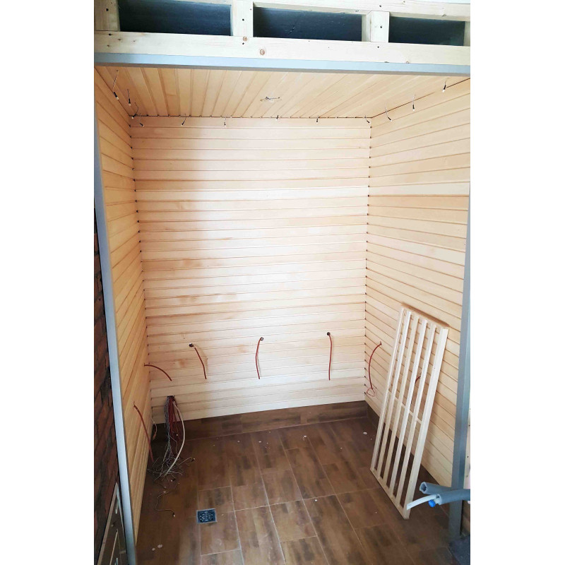 Stropy, steny a lavice sú vyrobené z lipového dreva s ozdobnými prvkami z cédrového dreva. Podlahový rošt z jelše čiernej. Podpery a steny lavičiek sú lakované a voskované, čo zaisťuje trvanlivosť dreva.