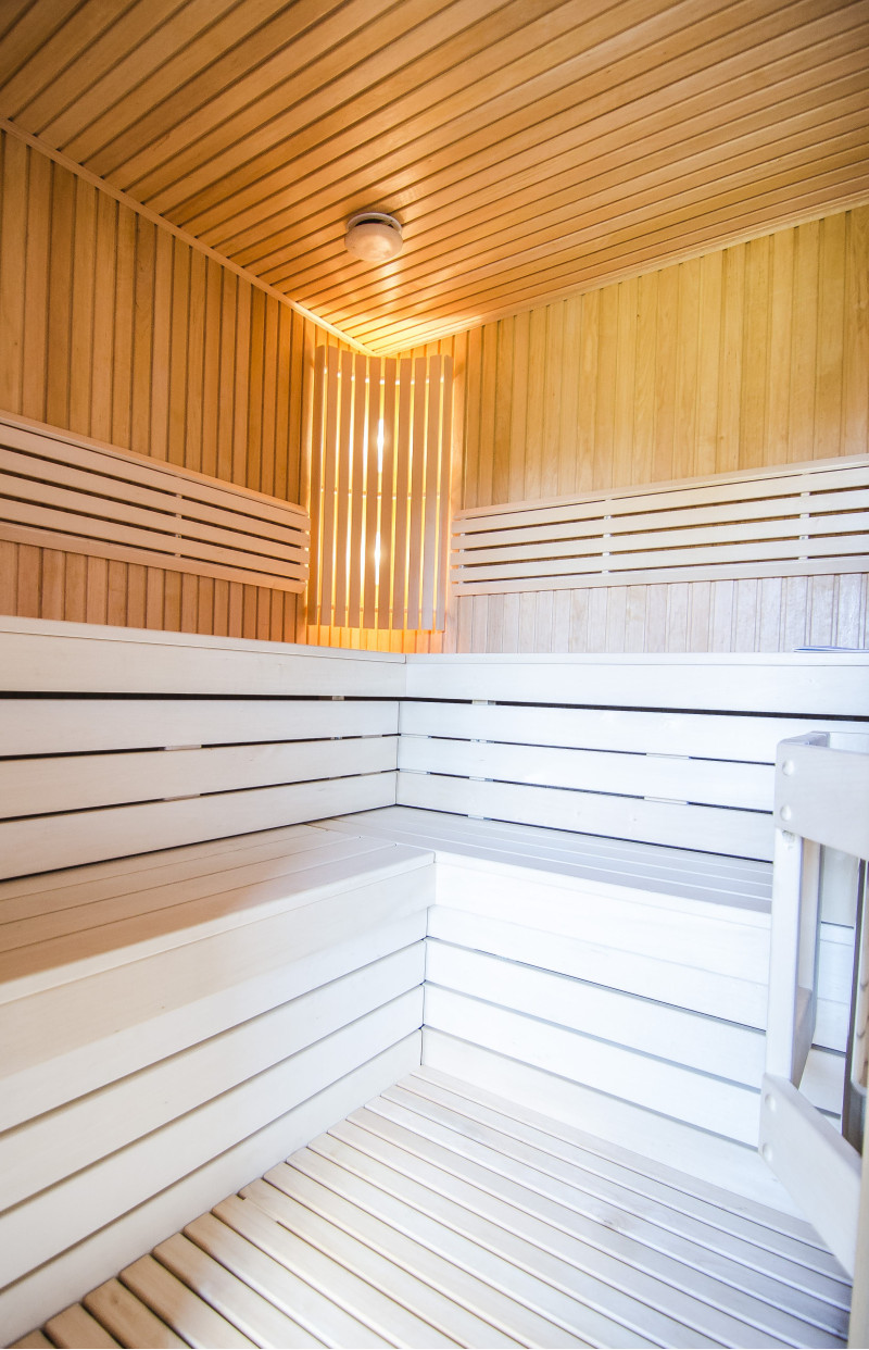 Osvetlenie - dve lampy Harvia inštalované pod operadlom.