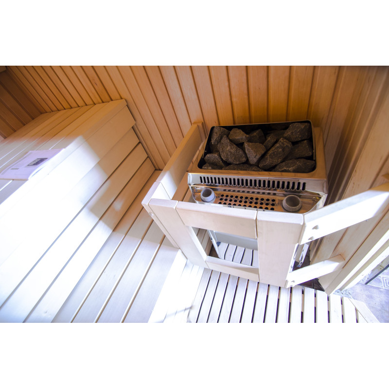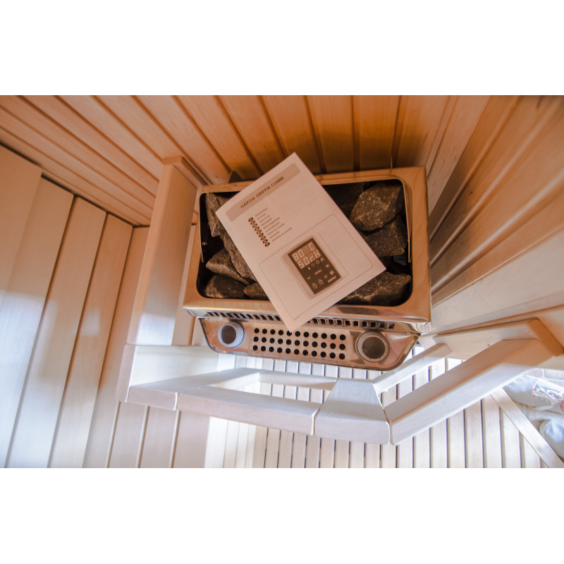 Ohrievač - Harvia Topclass Combi - elektrický saunový ohrievač s parným generátorom, zavesený na stene. Vonkajšia a vnútorná úprava: nehrdzavejúca oceľ. Súprava obsahuje dva kamenné hrnce na vône a parný gril.
