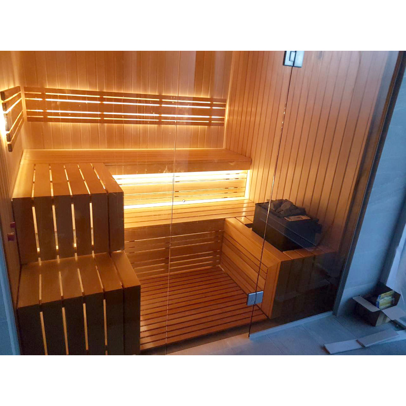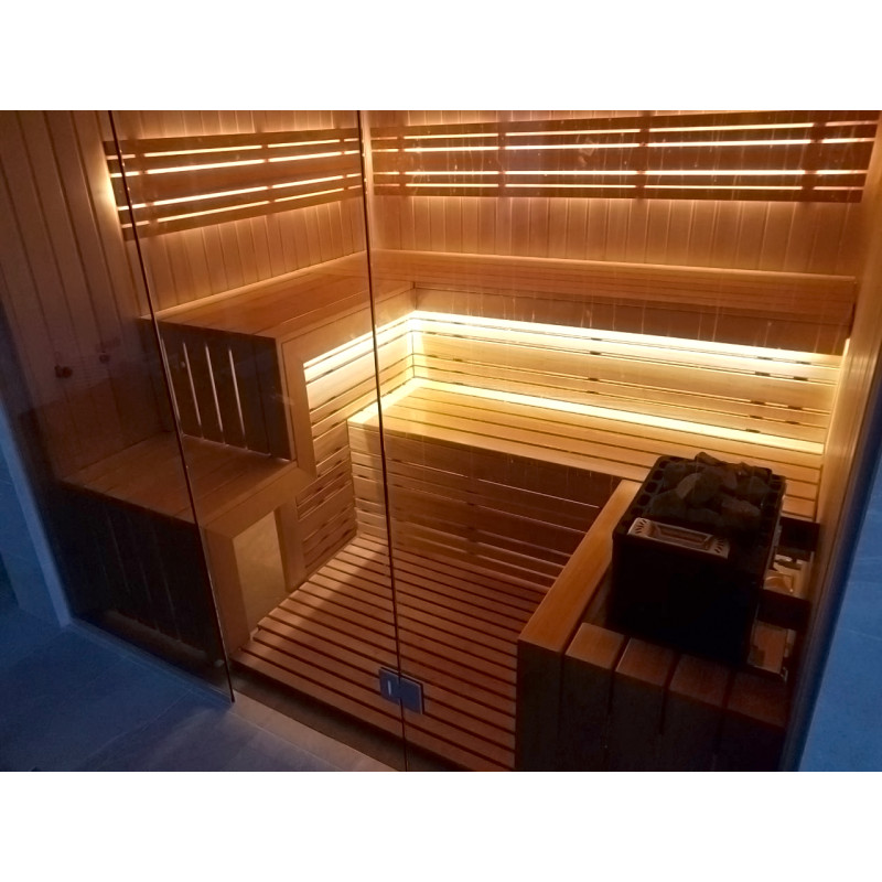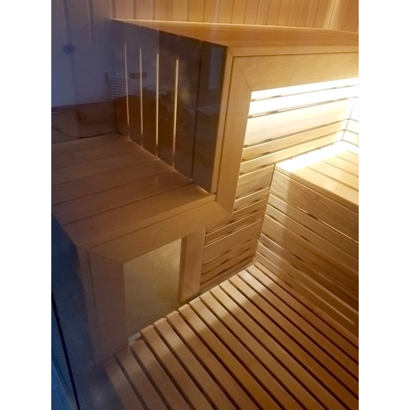 Drevo Abachi na lavičky a operadlá je skvelou voľbou, nakoľko sa toto kvalitné drevo neprehrieva a pri sedení na lavičkách z takéhoto dreva je nemožné sa popáliť. Cédrové drevo dodáva interiéru sauny aj moderný vzhľad.