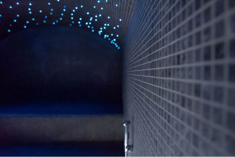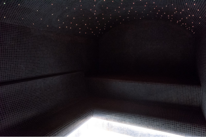 Pod lavicami - LED osvetlenie odolné voči vlhkosti a teplote, osvetľujúce podlahu. Na osvetlenie oblúkového stropu bol zvolený systém osvetlenia z optických vlákien „Starry Sky“, ktorého farby je možné jednoducho a rýchlo meniť pomocou ovládacieho panela.