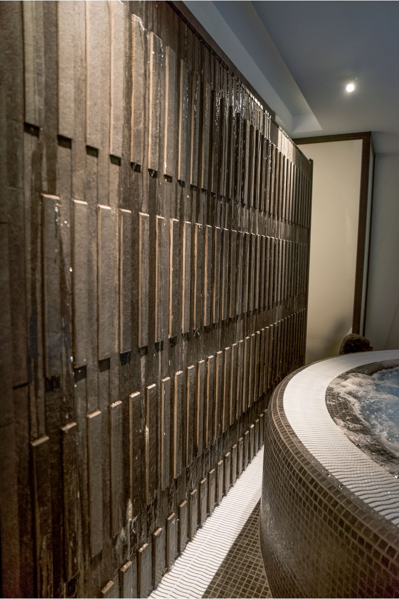 Bazén je ohraničený stenou s tečúcou vodou. Zber vody, úniky, filtračné systémy sú inštalované. Padajúca, kvapkajúca voda vytvára v kúpeľoch tropický exotický štýl. Atmosféra, ktorú vytvára východ, umožňuje zažiť exkluzívny odpočinok.