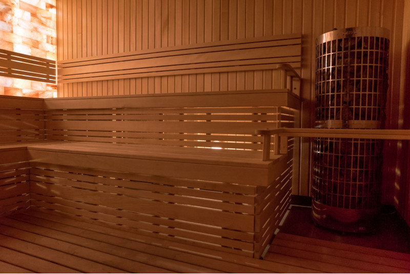 Na osvetlenie sauny boli použité 4 lampy odolné voči vlhkosti a teplote a LED osvetlenie za himalájskou soľnou stenou.