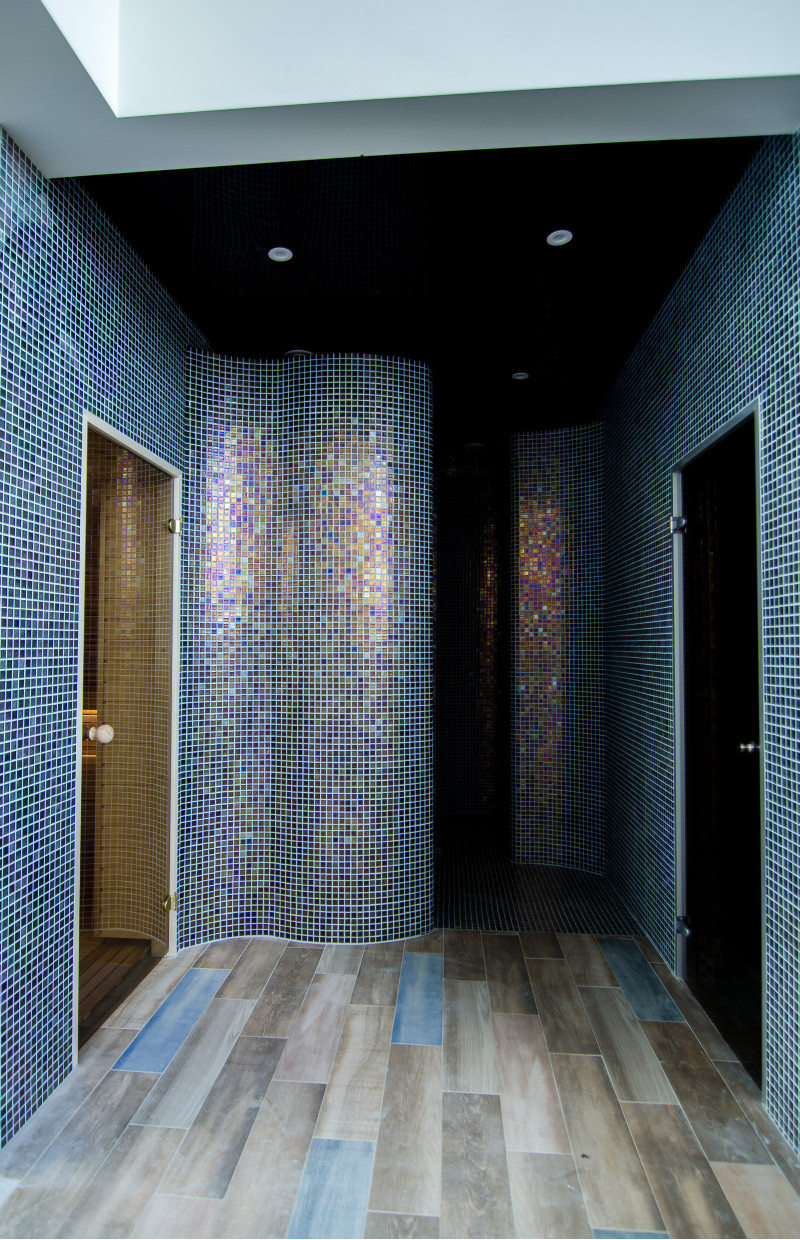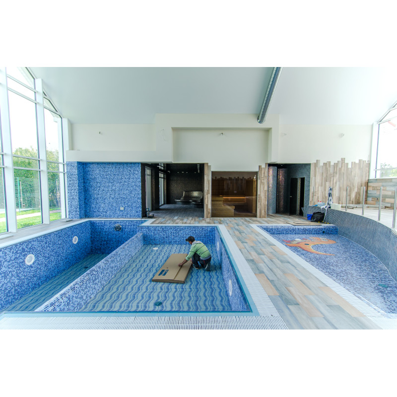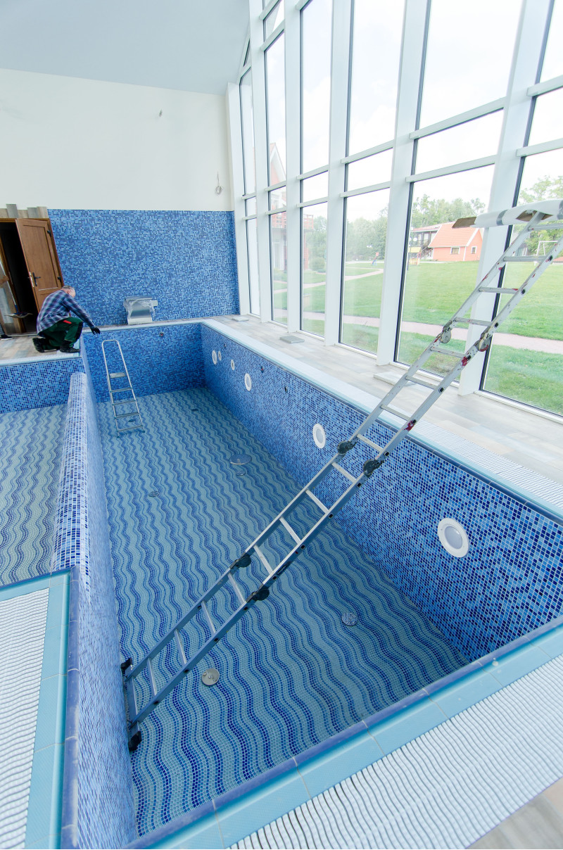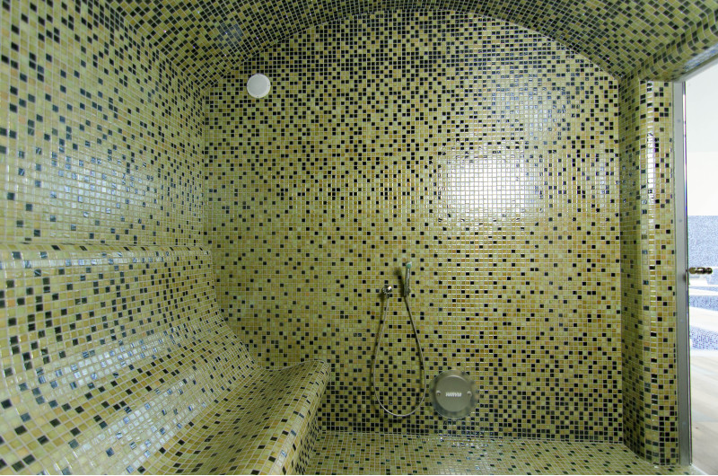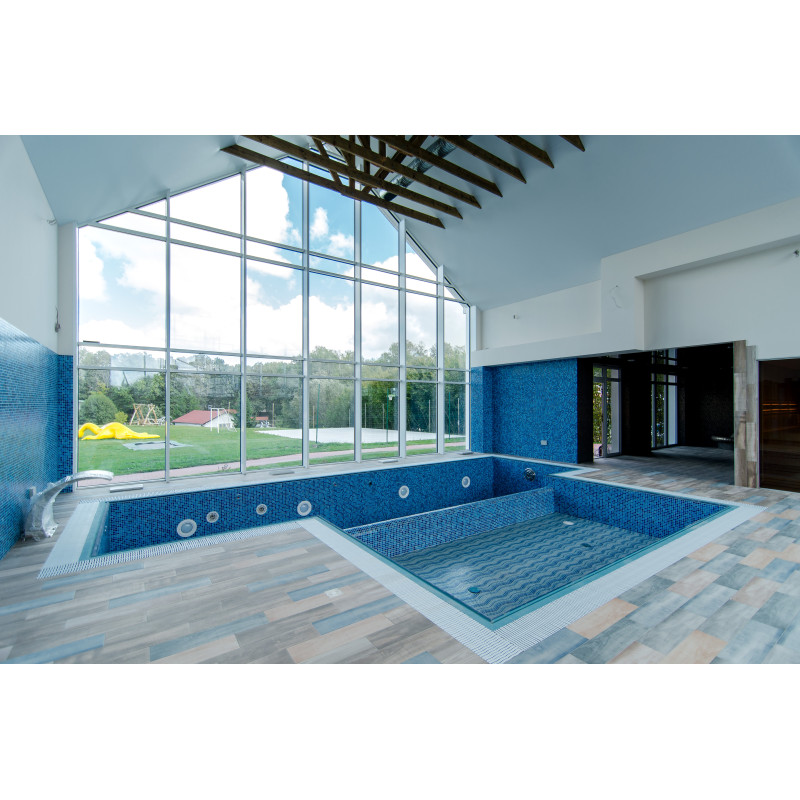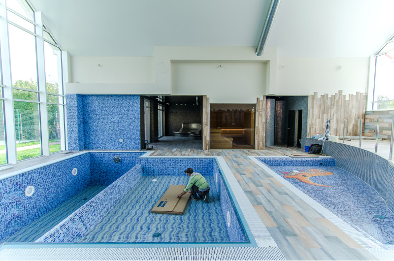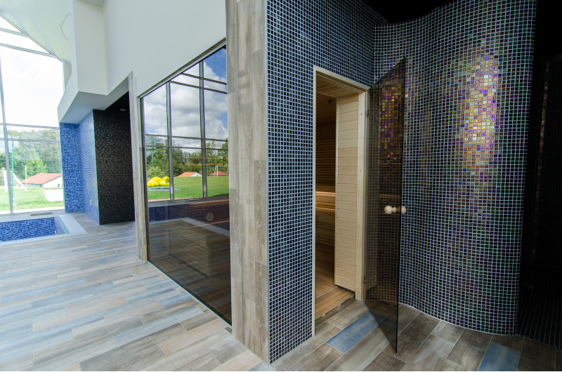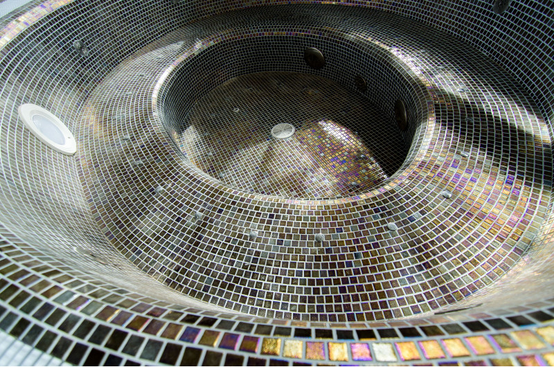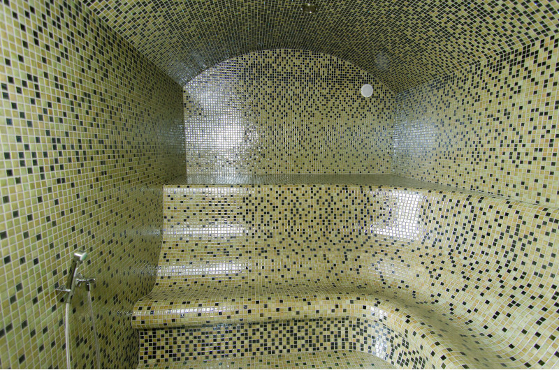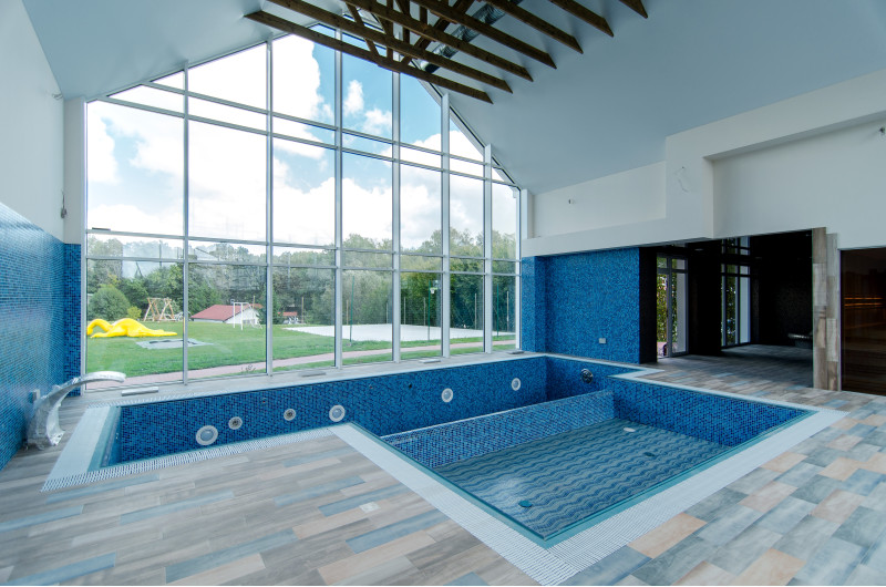 Hydromasážny bazén - 8 miest. Vybavené betónom. Interiér je pokrytý mozaikovými dlaždicami. Podvodné LED svietidlo, masážne trysky, filtračné zariadenie, automatické dávkovacie zariadenie chemikálií.