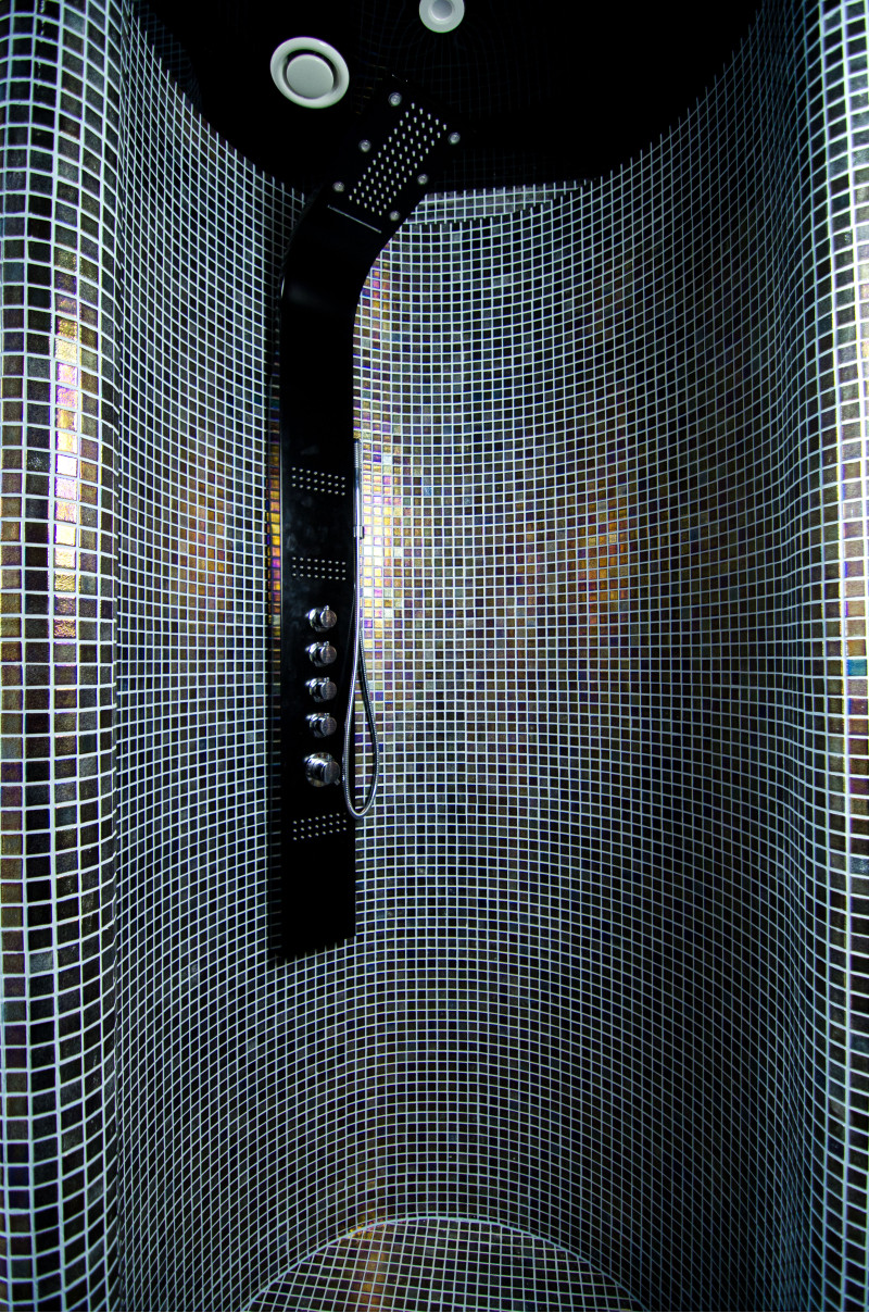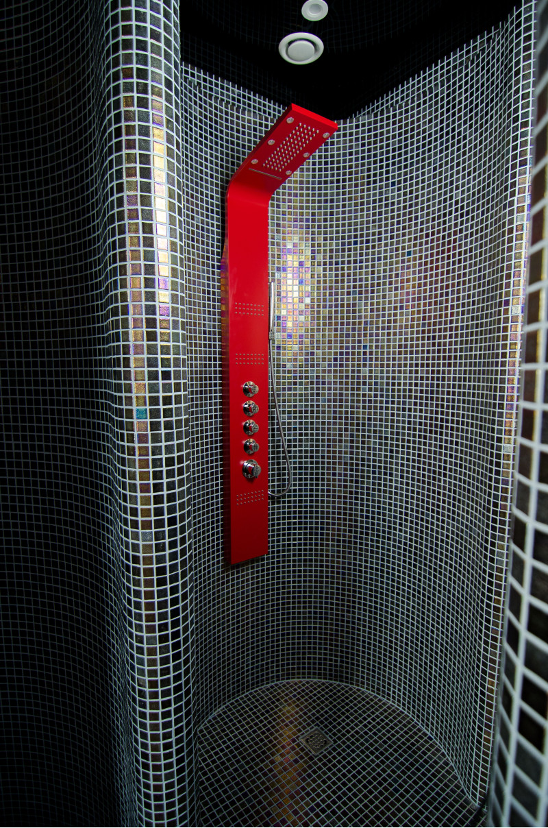 3 zakrivené sprchy. Vybavené okrúhlymi sprchovými kútmi s výstužou a hydroizoláciou. Jedna zo spŕch má dubové vedro s plastovou vložkou.