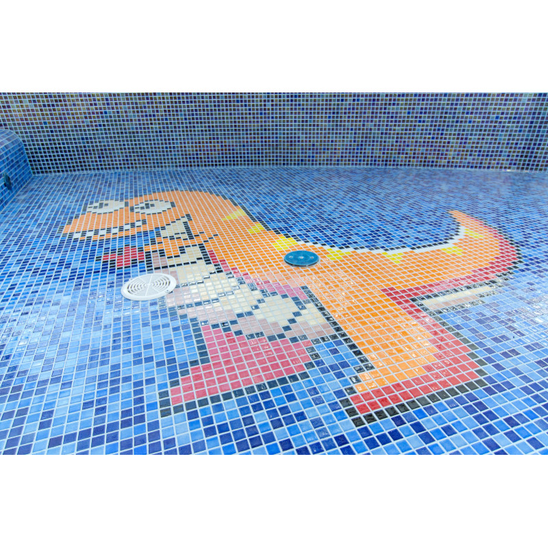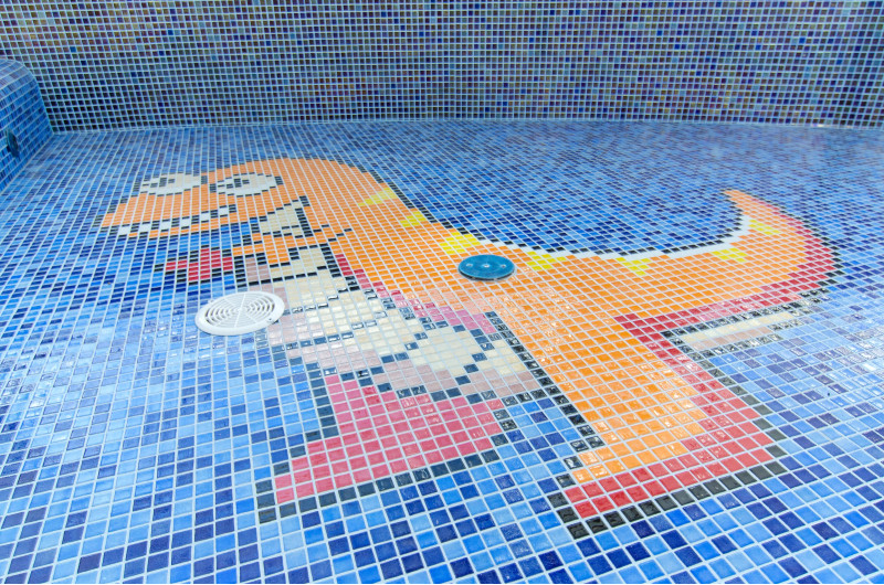Bazén s hĺbkou 15 cm je určený pre najmenších vodných nadšencov. Jej dno zdobí farebná mozaiková kresba.