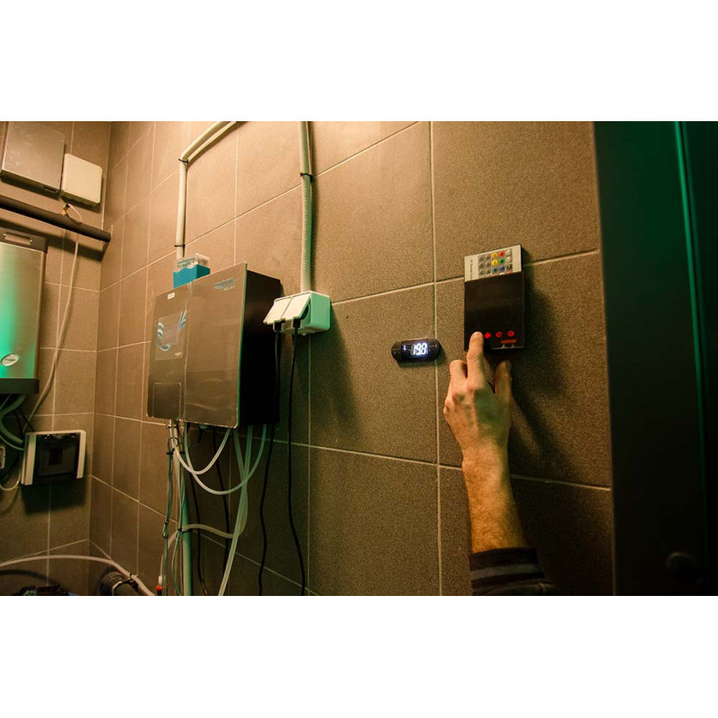 - el. rúra EOS BI-O Mat U 12 kW, ovládací panel Harvia Xenio Combi CX110C s prídavnou pohonnou jednotkou,