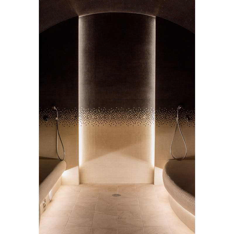 - Pod lôžkami sú inštalované svietidlá odolné voči vlhkosti a teplote. LED osvetlenie je inštalované za himalájskou soľnou stenou.