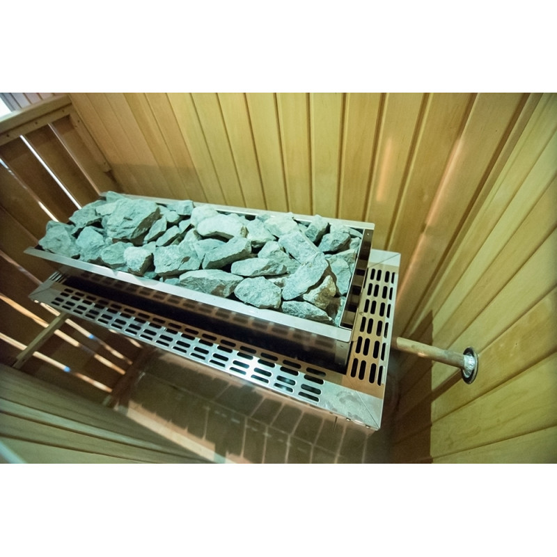 - Elektrický saunový ohrievač - EOS 34.G. Určené pre veľké komerčné sauny. Vďaka svojej spoľahlivosti je ideálny do sáun, kde sauna musí fungovať neobmedzene. Vonkajšia časť je vyrobená z kvalitnej nehorľavej ocele, vďaka čomu rúra nestráca svoj pôvodný vzhľad po dlhé roky používania.
